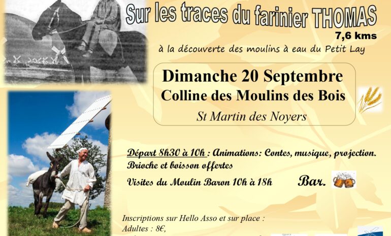 Cette balade conviviale permettra aux participants de marcher dans les pas du farinier Thomas tout en explorant le patrimoine local et l’histoire des moulins.