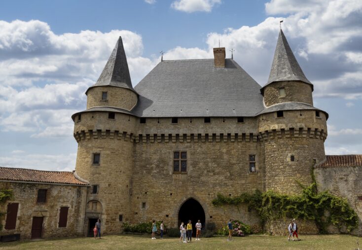 Classé Monument Historique, le château date du XVème siècle. Remanié sur les bases d’un château construit vers l’an Mil, il constitue l’un des meilleurs exemples d’architecture militaire du Moyen-Âge en Vendée. Son donjon est constitué d’un châtelet quadrangulaire et de deux tours. Il est ceinturé d’un chemin de ronde sur mâchicoulis. Son enceinte fortifiée comportait neuf tours et deux pont-levis qui donnaient accès au château et furent en partie détruits par un incendie en 1794 pendant la Révolution Française.
