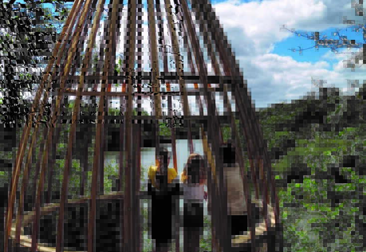 Vous entrez dans une nature étonnante où Amanéa a grandi ici avec, comme ami, un grand oiseau venu des mers du Sud… mais cet ami a disparu. Alors Amanéa devenu grande a construit d’immenses instruments de musique pour le faire revenir auprès de lui…