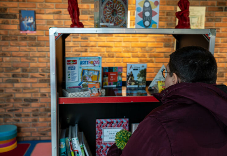 Une ludothèque avec un espace de lecture et de jeux autour de l’art.